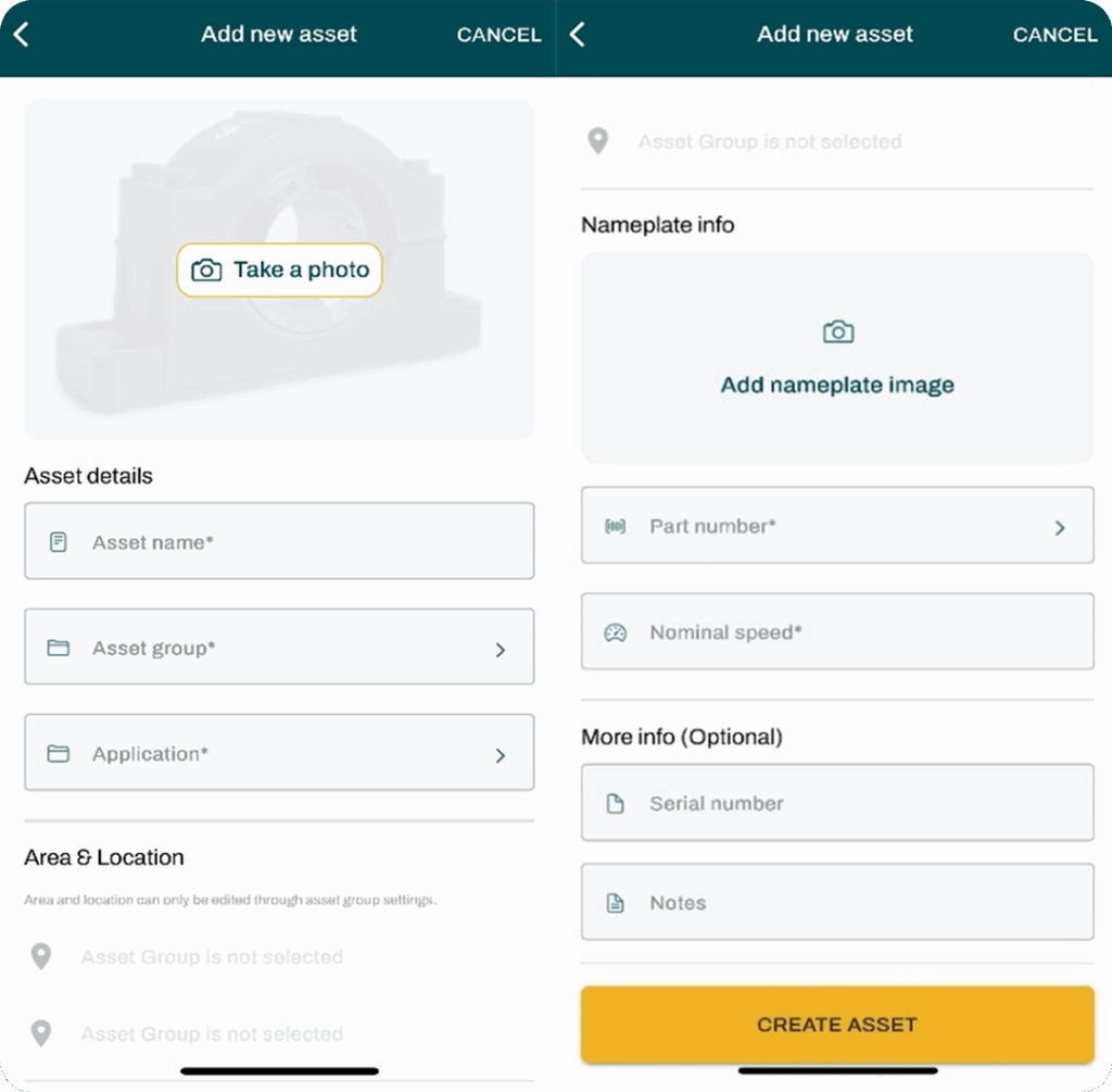 After the part number, enter the nominal speed of the asset. This is required because FFT analysis uses the running speed to interpret vibration data accurately.